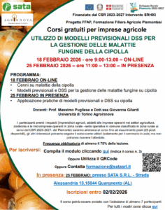 I modelli previsionali per le malattie DSS (Decision Support System): come funzionano, che informazioni forniscono, come interpretarli e gli errori da non commettere. Saranno presentati i principali modelli previsionali per le malattie (key-pest) della patata e della cipolla. Il corso in aula potrà mostrare in maniera diretta l’utilizzo dei modelli e le modalità di lettura dei DSS direttamente sulla piattaforma informatica Monitora (PSR Op. 16.1.1), quale piattaforma modello a titolo esemplificativo. La lezione in aula sarà accompagnata dalla visita in campo per comprendere l’applicazione concreta dei sistemi di supporto alle decisioni per le malattie ai sistemi colturali di patata e cipolla. Sarà rivolta particolare attenzione sull’’importanza del tempestivo aggiornamento degli input dei modelli forniti dall’agricoltore/utente.