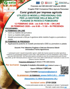 I modelli previsionali per le malattie DSS (Decision Support System): come funzionano, che informazioni forniscono, come interpretarli e gli errori da non commettere. Saranno presentati i principali modelli previsionali per le malattie (key-pest) del pomodoro. Il corso in aula potrà mostrare in maniera diretta l’utilizzo dei modelli e le modalità di lettura dei DSS direttamente sulla piattaforma informatica Monitora (PSR Op. 16.1.1), quale piattaforma modello a titolo esemplificativo. La lezione in aula sarà accompagnata dalla visita in campo per comprendere l’applicazione concreta dei sistemi di supporto alle decisioni per le malattie al sistema coltura del pomodoro da industria. Sarà rivolta particolare attenzione sull’’importanza del tempestivo aggiornamento degli input dei modelli forniti dall’agricoltore/utente.